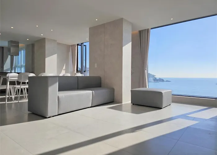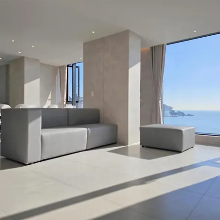 Die Villa am Strand 펜톤나인 해변열차 송정2호점 Busan bietet einen Swimmingpool sowie Blick aufs Meer und liegt im Stadtviertel Haeundae.